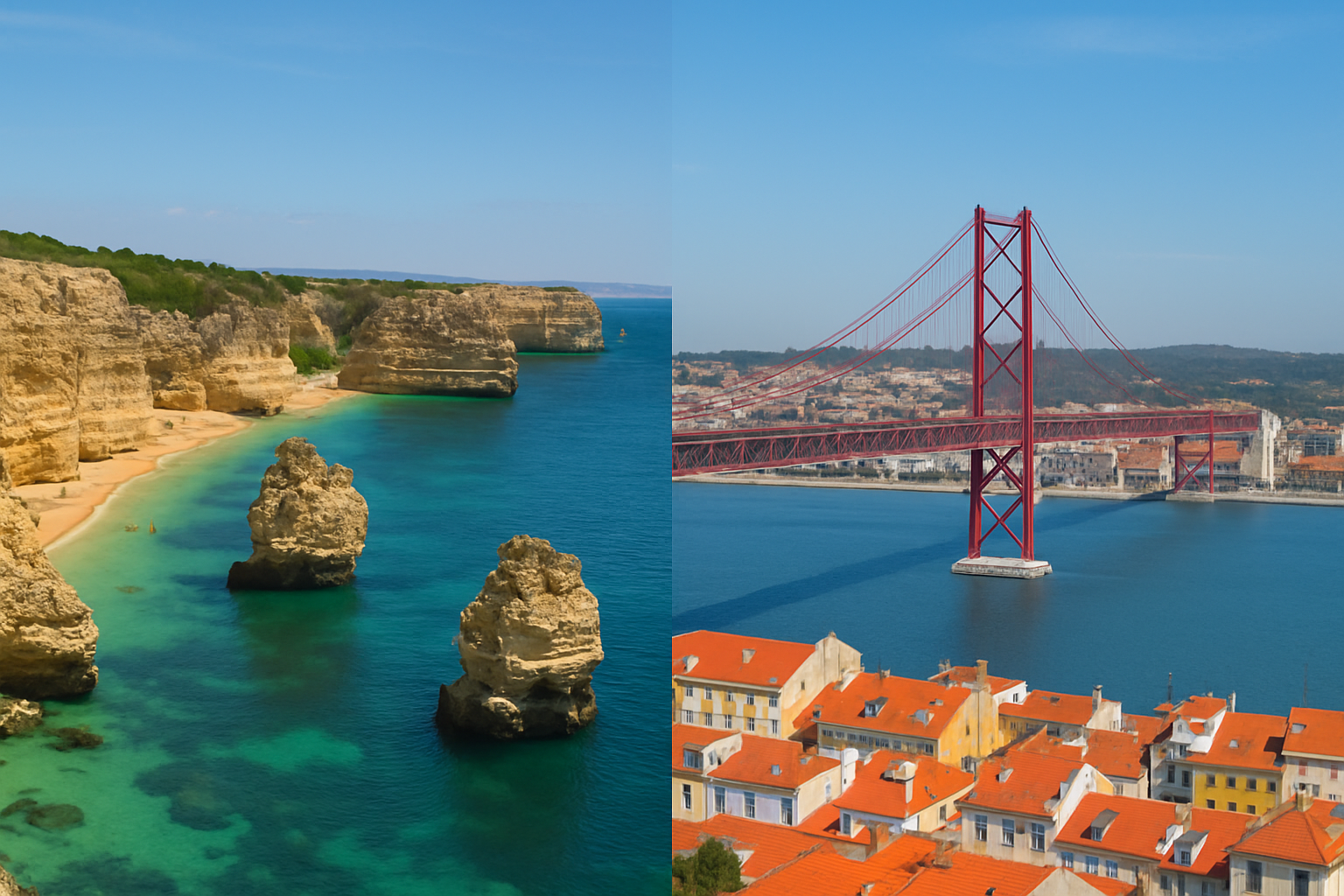 Start your journey in Lisbon or in the Algarve, discovering the perfect contrast between city and coast. Explore Lisbon’s vibrant streets, historic neighborhoods, and iconic landmarks. Then relax in the Algarve, with golden cliffs, turquoise waters, and some of Europe’s most stunning beaches.
